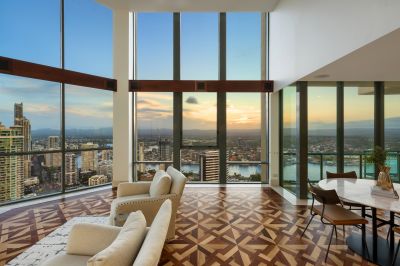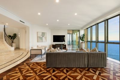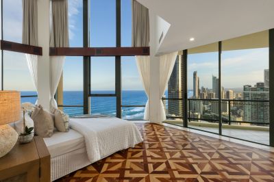 Upon entering this lavish Penthouse, 5m high ceilings and extensive use of glass give the ultimate feeling of space and arguably some of the finest views on the Gold Coast. Factor in the picturesque 280 degree panoramas encompassing the glistening Pacific Ocean, the glittering skyline, through to the meandering Main River and the majestic hinterland, and you'll soon see there's simply no comparison to this extravagant example of beachside penthouse perfection.