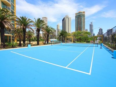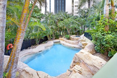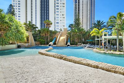 Sun City facilities include a lagoon pool with waterslides, heated indoor pool, heated indoor and outdoor spa, steam room and sauna, full-size tennis courts, gymnasium, games rooms, lush tropical gardens, on-site restaurant, full security system and 24-hr reception. Located on the northern end of Surfers Paradise, the resort is just opposite the Gold Coast's amazing beaches, and an easy stroll to world-class restaurants, cafes, and shops. Plus, with the G-Link Rail on its doorstep, Sun City is only minutes away from every hot spot in town including the Gold Coast Convention Centre, The Star Casino, Pacific Fair Shopping Centre, Main Beach, Marina Mirage, and Southport CBD/Chinatown.