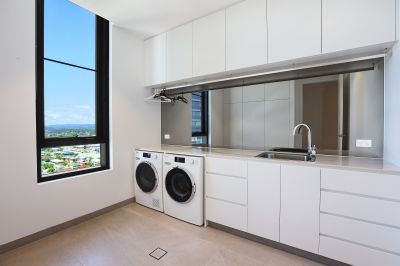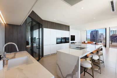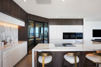 Sprawled across levels 16 and 17 with a north-east aspect, the residence captures elevated, uninterrupted views spanning the ocean, hinterland and surrounding city skyline. The spacious, well-designed 446m2 floorplan offers the ultimate in luxury living, with a private internal lift to travel between both floors with ease.