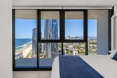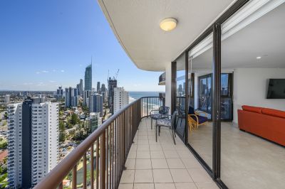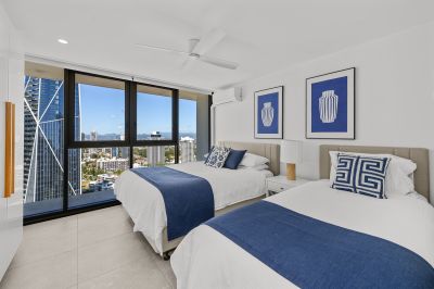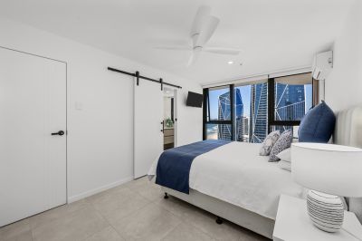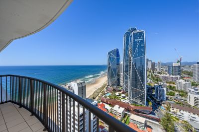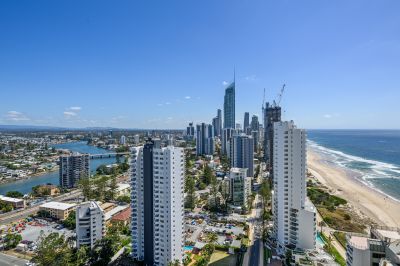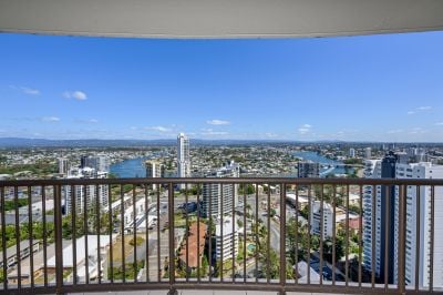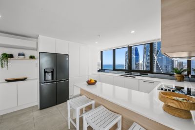 This oversized 143m², fully renovated apartment on the 31st floor features two spacious bedrooms, two bathrooms, and showcases breath-taking views of the ocean, Surfers Paradise skyline, river and hinterland -spectacular by day and magical at night.