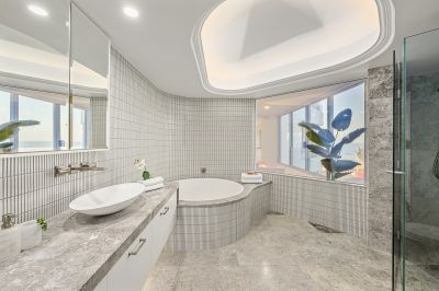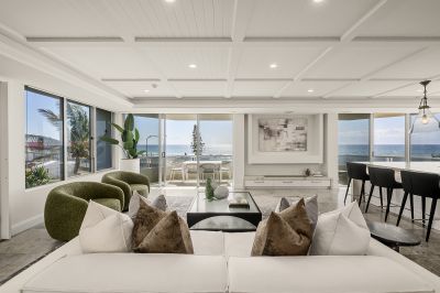 Occupying the entire 2nd floor and boasting 270m2 of luxury beachfront living with a massive 30m* frontage to the ocean, this Beach-House style Lux residence features 3 opulent bedrooms, 2.5 bathrooms, elegant living, dining and entertaining areas, separate laundry, and plenty of space.