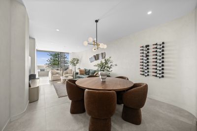 A gourmet kitchen and butler's pantry have been meticulously appointed for everyday ease and elevated entertaining, showcasing Travertine benchtops alongside premium Miele and Liebherr appliances. Adjacent, an open-plan living and dining domain extends onto a covered balcony, perfect for hosting guests or relaxing and marvelling at the coastal outlook. Ocean views also define the master suite, while a walk-in robe and a spa-inspired ensuite with a steam room are indulgent extras. Two additional bedrooms, including one with its own elegant ensuite, are complemented by a modern main bathroom, and parking is provided via two secure side-by-side car spaces + large lock-up storage cage.